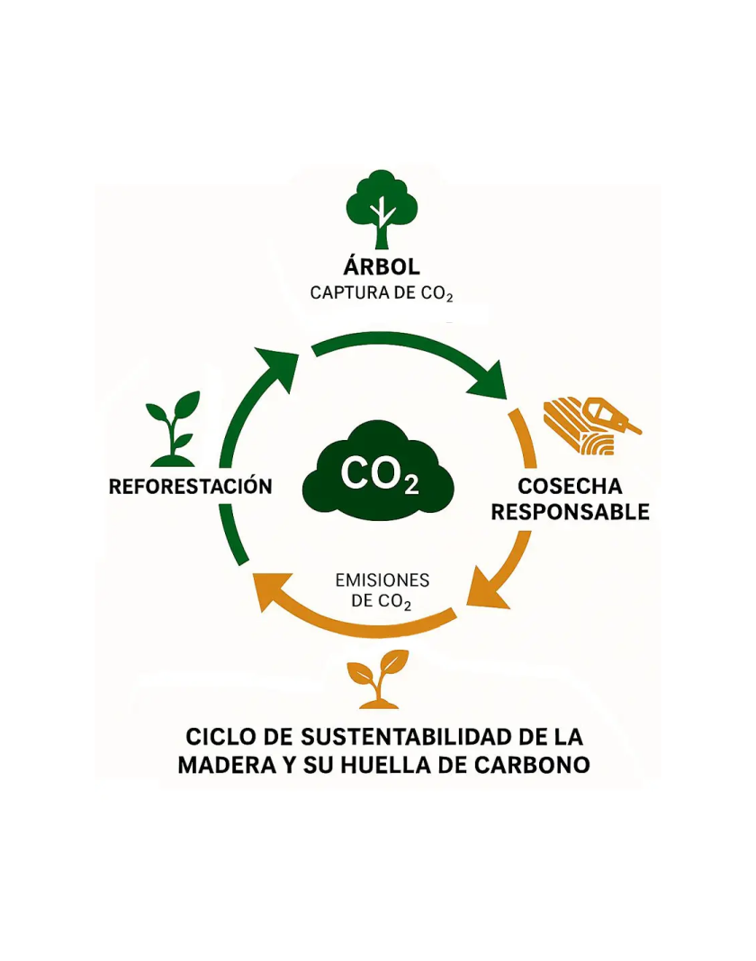 Las maderas duras actúan como sumideros de carbono, almacenando CO₂ durante su crecimiento y en productos manufacturados, contribuyendo a la reducción de gases de efecto invernadero.